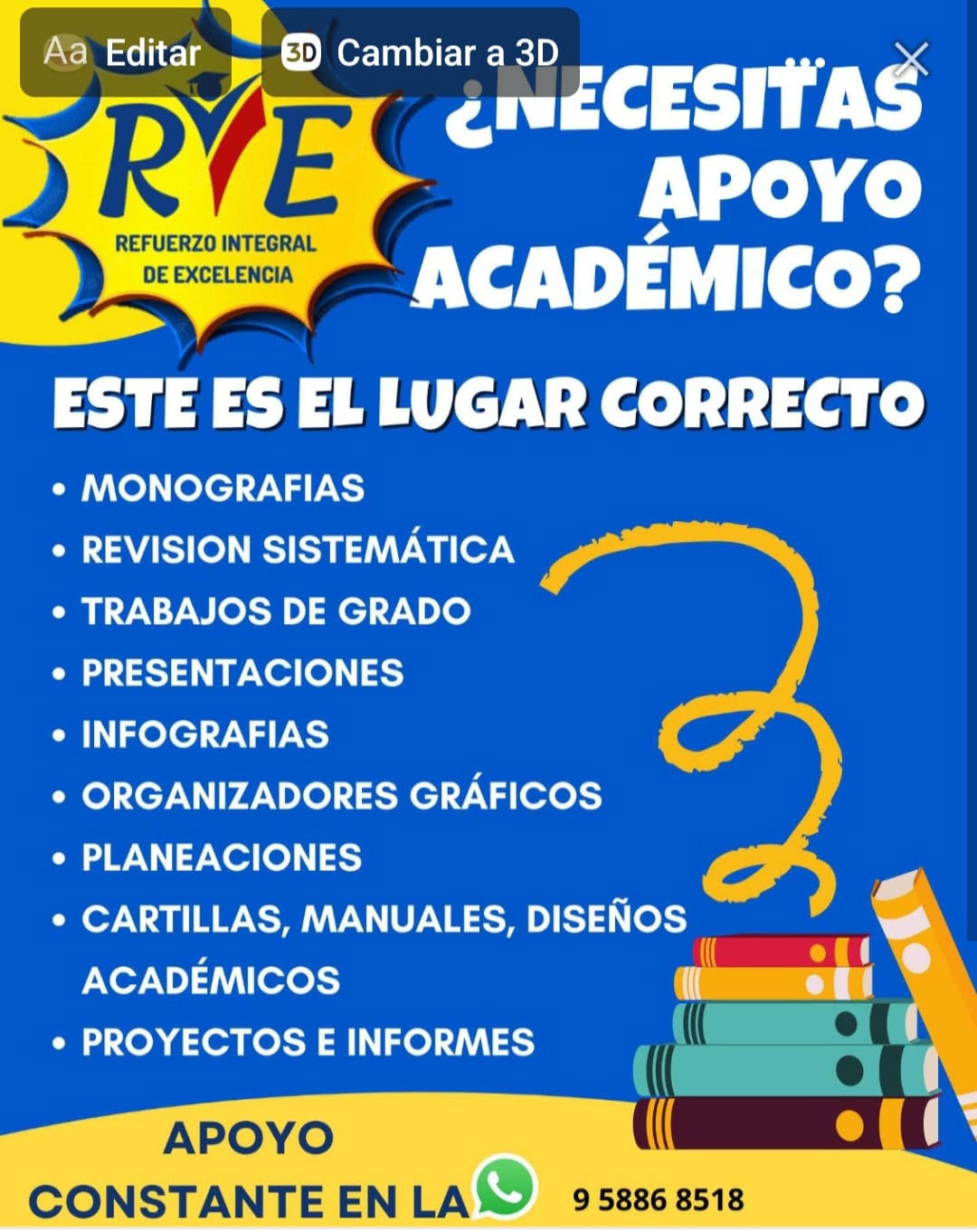 Somos un equipo multidisciplinario que nos encargamos de elaborar tesis, informes, proyectos, monografías, infografías, portafolios docente y PPT, todo ajustado a las necesidades e intereses particulares.